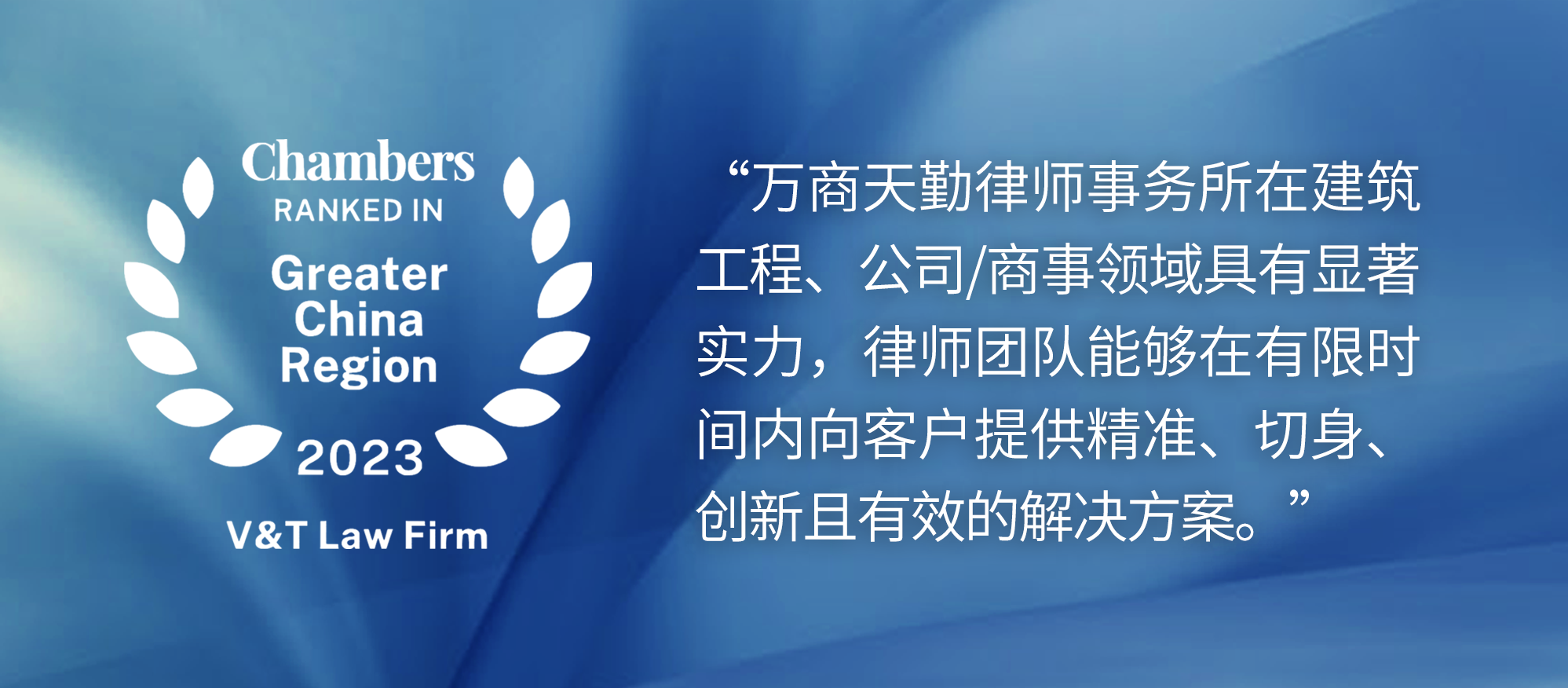 2024年1月18日,国际权威法律评级机构钱伯斯(Chambers&Partners)正式发布了《大中华区法律指南2024》。万商天勤凭借卓越的市场表现和广受赞誉的客户认可,在建筑工程、公司/商事(海南地区)业务领域荣登领先律所榜单。万商天勤合伙人张晓峰律师、卫永鹏律师凭借出色的法律服务和丰富的实践经验,再度荣膺钱伯斯年度领先律师。