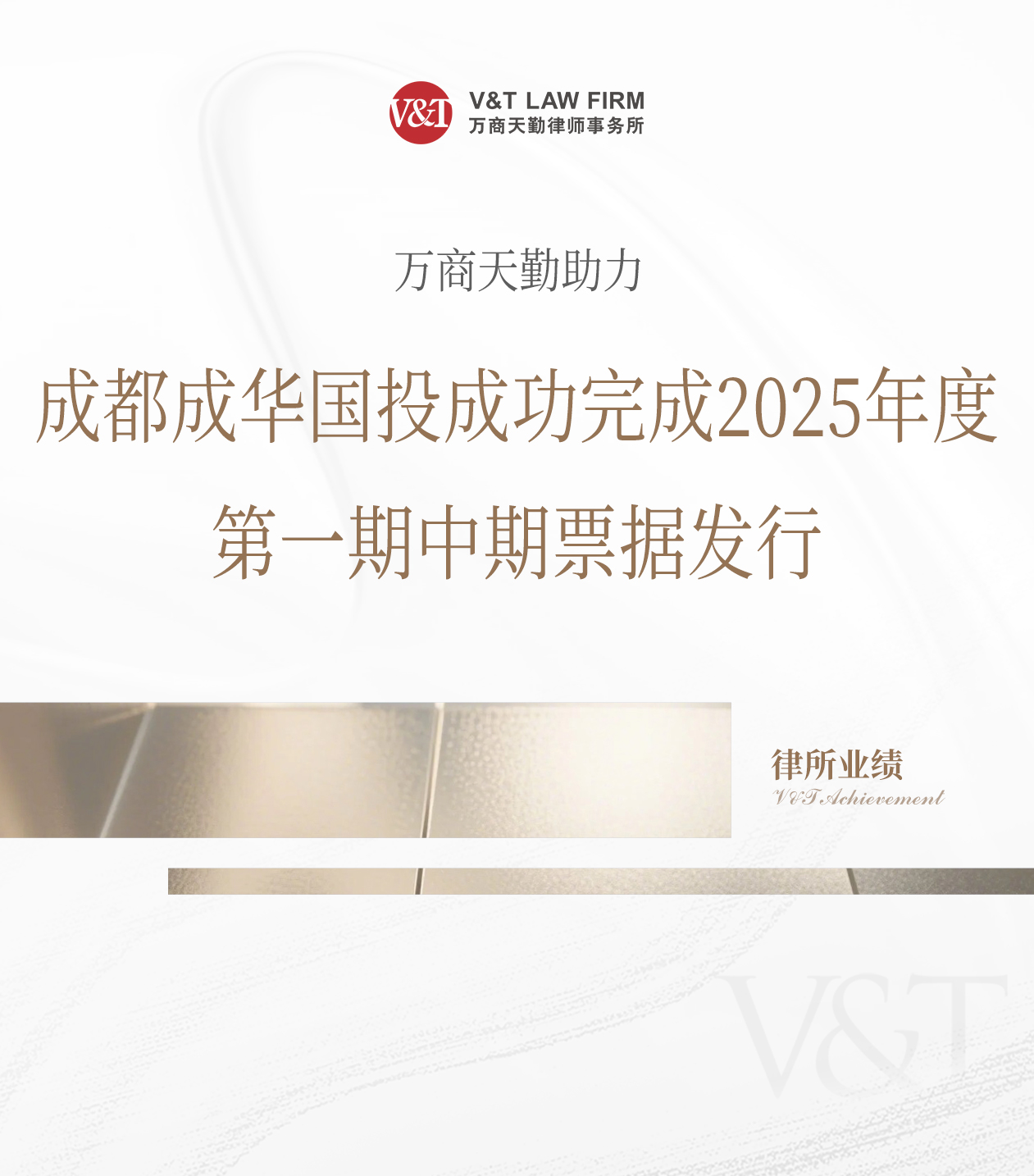 V&T 业绩|万商天勤助力成都成华国投成功完成2025年度第一期中期票据发行