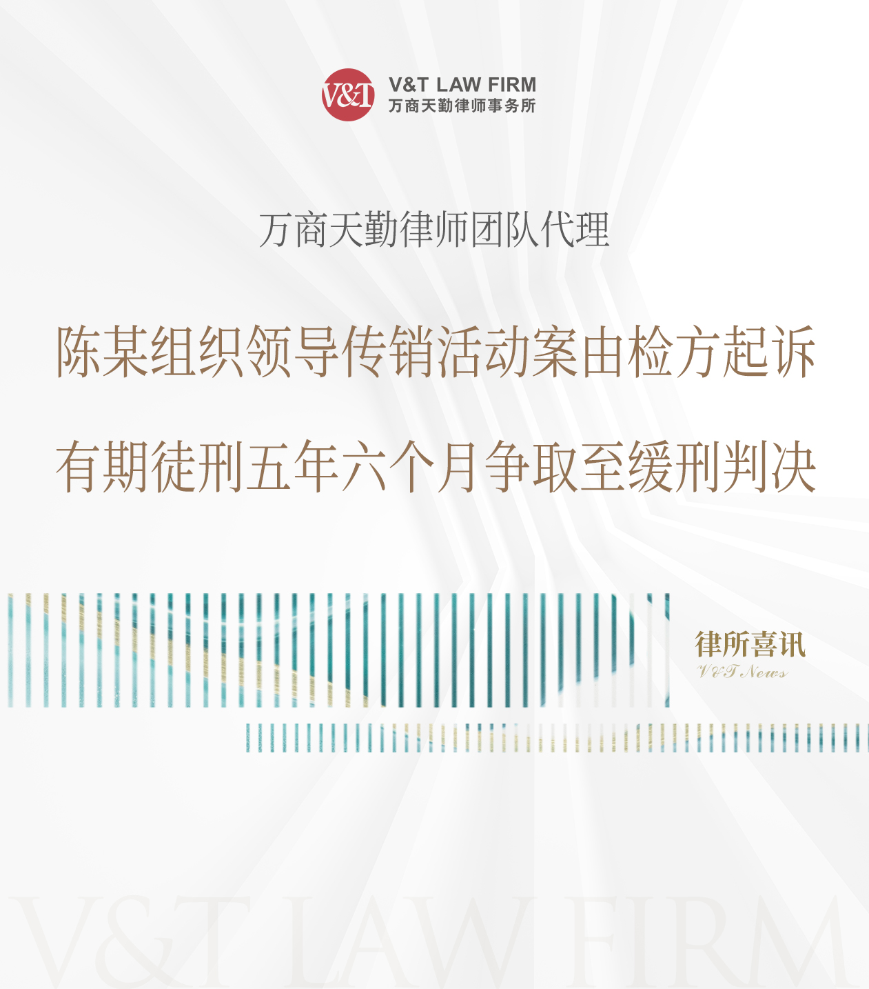 VT喜讯|万商天勤律师团队代理的陈某组织领导传销活动案由检方起诉有期徒刑五年六个月争取至缓刑判决