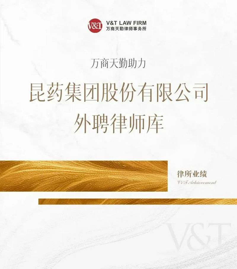 V&T 业绩|万商天勤入选昆药集团股份有限公司外聘律师库