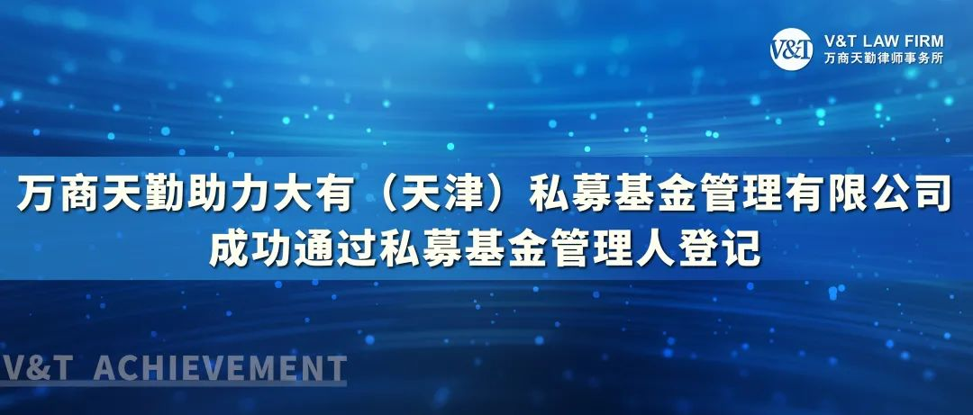 V&T 业绩|万商天勤助力大有(天津)私募基金管理有限公司成功通过私募基金管理人登记