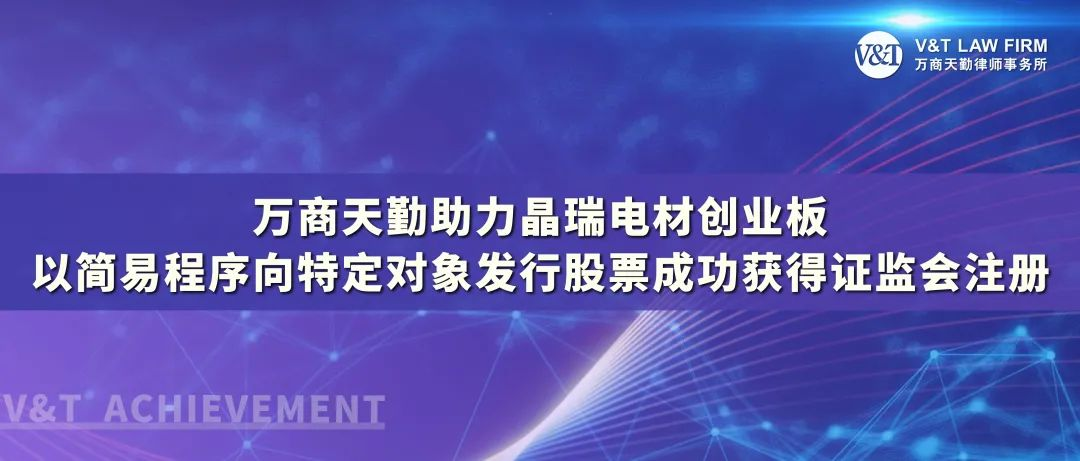 V&T 业绩|万商天勤助力晶瑞电材创业板以简易程序向特定对象发行股票成功获得证监会注册